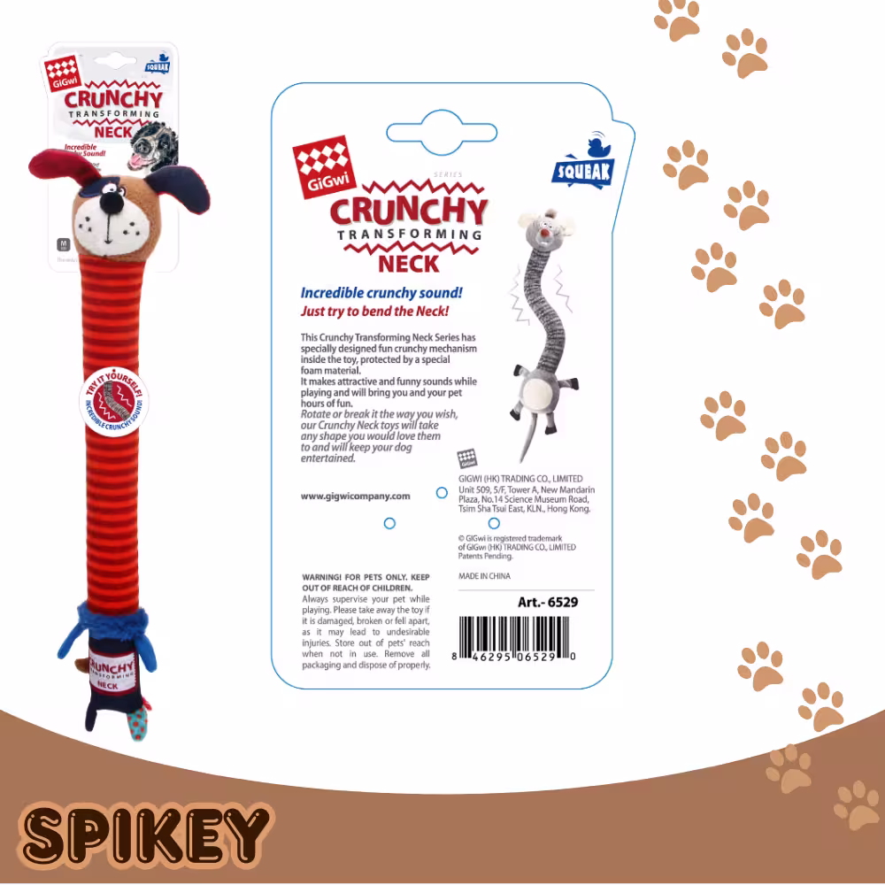 - הכירו את GiGwi Crunchy Neck – הצעצוע שנועד לרגש את החושים של הכלב שלכם! צעצוע הכלב הזה מעוצב עם מנגנון פנימי פריך בצוואר, המספק צליל קראנץ' מספק בכל נשיכה, פיתול ומשיכה. ניתן לסובב את הצוואר כדי לשנות את צורת הצעצוע, מה שהופך את זמן המשחק למהנה עוד יותר.